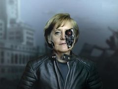 Originální způsob zvolil britský levicový časopis New Statesman, který dlouhodobě Merkelovou kritizuje. Udělal z ní Terminátora, známého z filmové série s Arnoldem Schwarzeneggerem. Je prý naprogramován zničit Evropu.
